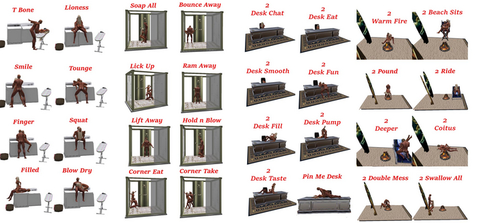 The fine new Windmaster A-Pose Orgy Couch 2 some to 10 some V55 is not only the item that will accommodate 5 couples (10 people) on it at the same time, but it will also rezz plethora of BDSM items, tantra chair, table... well just look at the pictures lol.